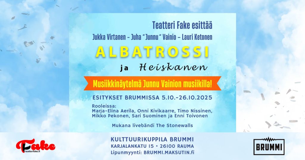 Lippuja esityksiin voi varata teatterifake@gmail.com tai puhelimitse 050 3390027. Suosittelemme tekemään ryhmävaraukset tätä kautta. Lippuja voi ostaa myös Raumalta Palvelupiste Pyyrmanista.